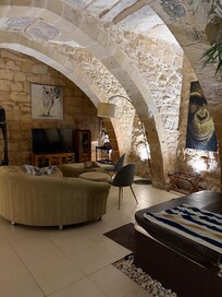 The hosts had equipped the accommodation extremely well (which included dishwasher tabs, laundry detergent,etc) and we had a welcome pack of the basics of milk, bread, cheese, coffee, tea and a couple of beers. The hosts even met us at the airport and we followed them to the accommodation as it was quite tricky to find. There is parking but it is on street parking near by the accommodation. The accommodation was lovely but quirky. You had to go outside and go up stone steps to get to the bedroom and the doorways were quite low. We thoroughly enjoyed our stay.